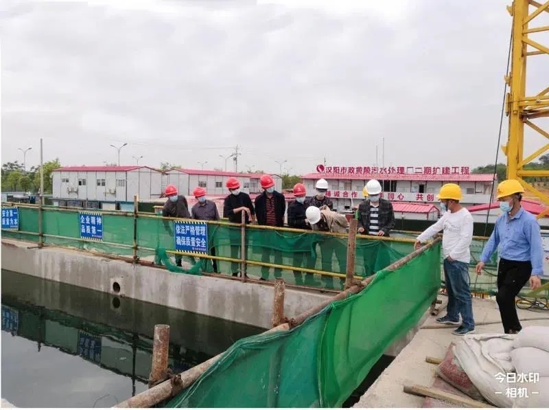4月17日,黄陵污水处理厂二期工程正在进行BDP生化池1号池满水实验验收工作,复工复产稳步推进。