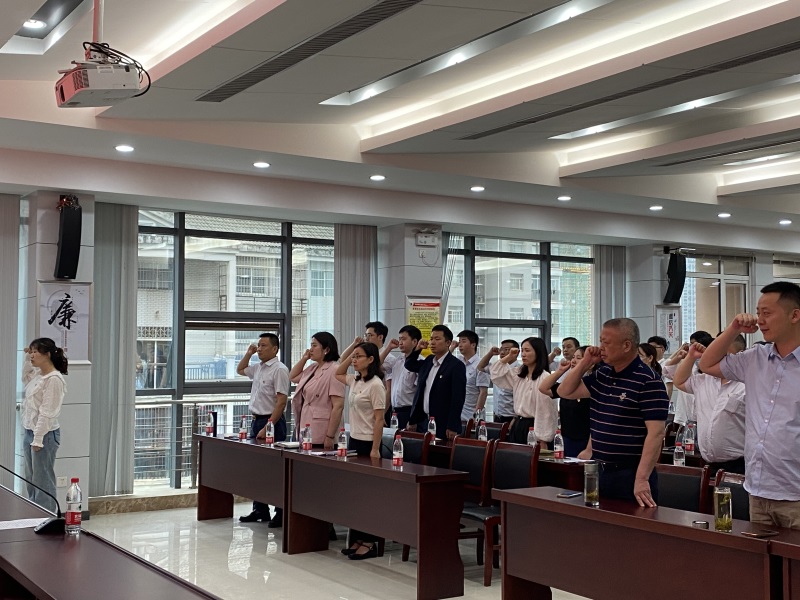 笃行初心职责,书写初心答卷。活动开始,全体党员齐唱国歌,重温入党誓词,铿锵有力的宣誓声响彻会场,彰显着党员的炽热初心。